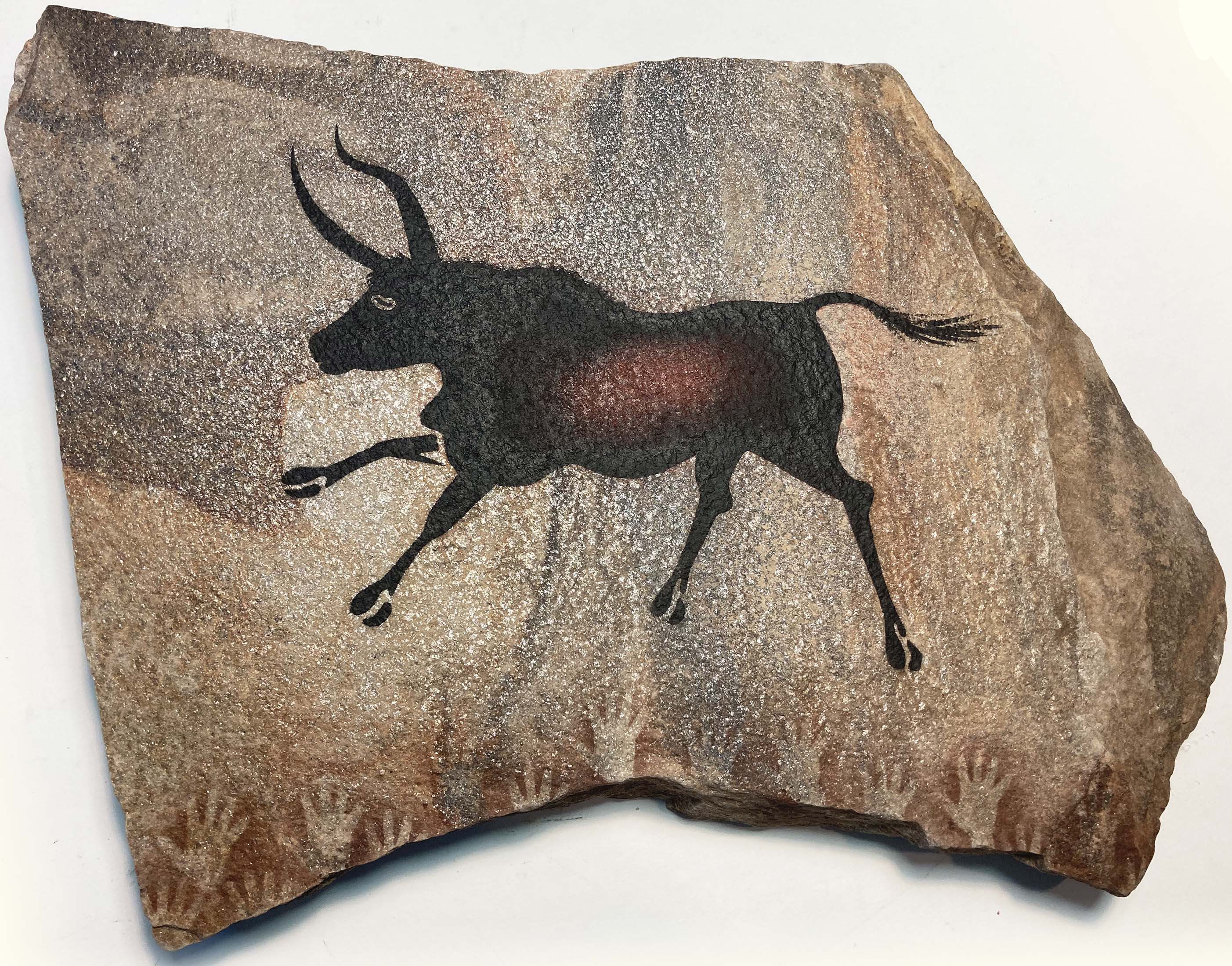 Even seeing the replica cave is a moving experience, but I resolved to learn how to paint on the closest thing I could to a cave wall, and try to bring prehistoric art back to life as it looked freshly painted.